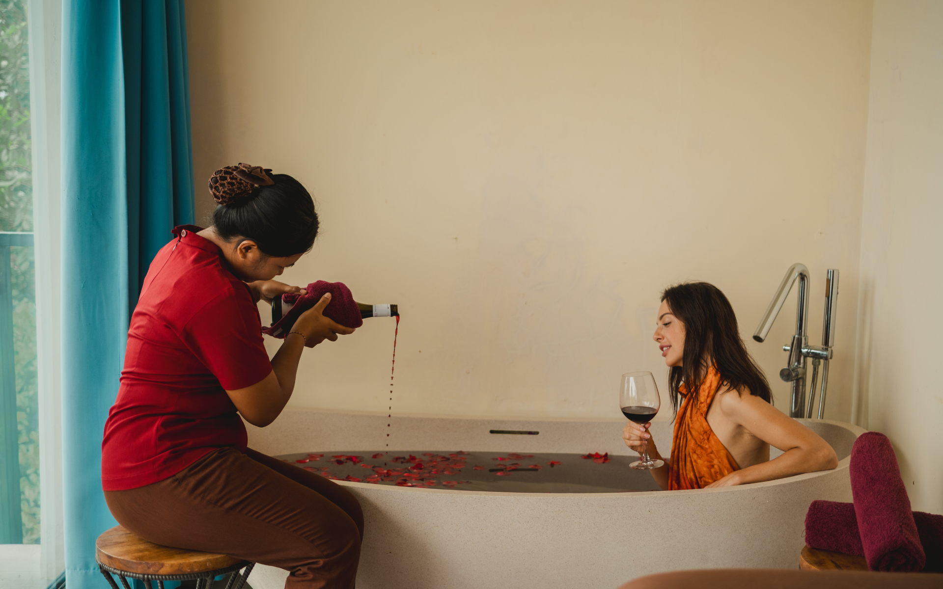 - Soothing rose petal wine bath